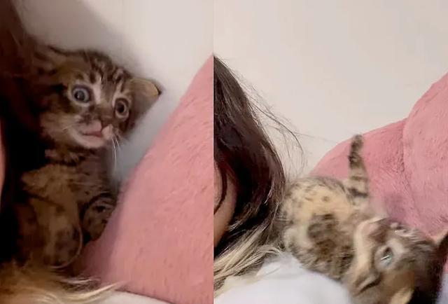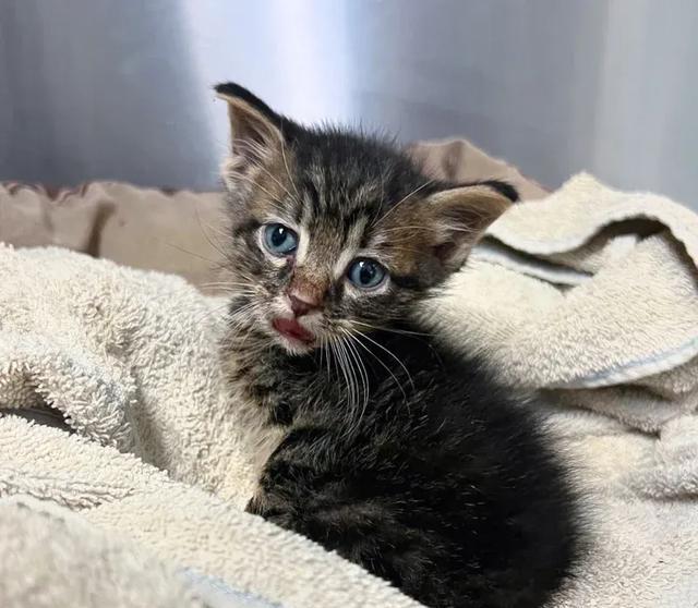 这只小猫无人搭理,体温过低的它急需医疗救治。