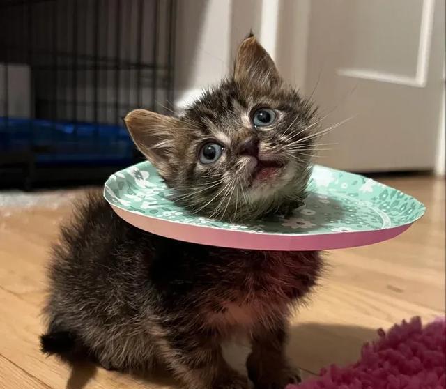 一只下巴脱皮了的小虎斑猫吸引了艾米莉的注意。